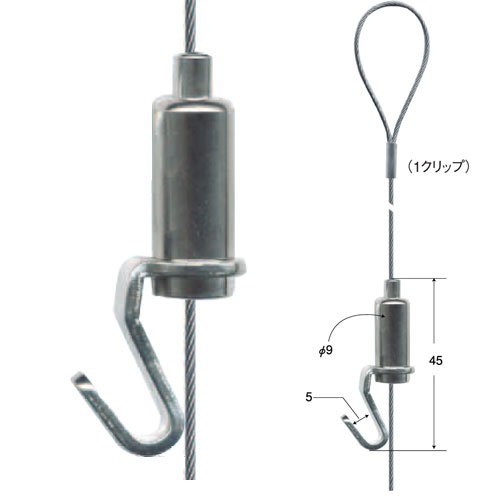 額などの掲示位置が上下任意の位置に自由に変更できる自在フックです。直径1mmのステンレスワイヤーなので、荷重にも耐えられます。ピクチャーレール「G2」などと組み合わせることで、上下左右、好きな位置に掲示物を移動させることができるようになります。