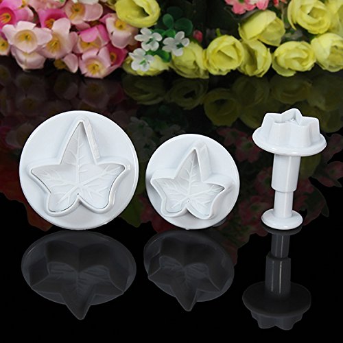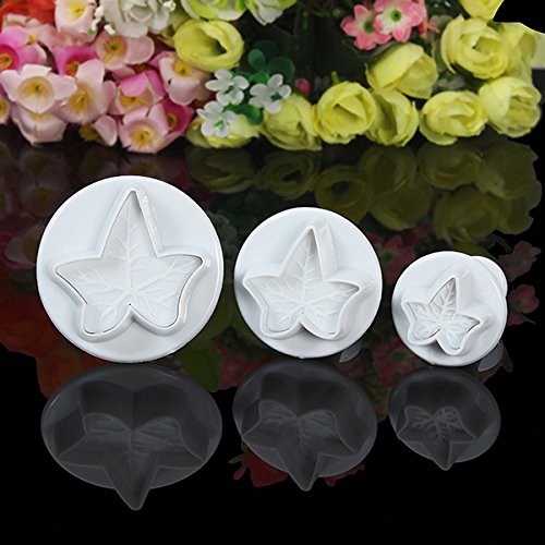 3枚入メープル リーフ形状フォンダン クッキー ケーキ プランジャー カッター金型