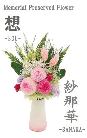 大切な人へお供えするお花… いつも美しくきれいなお花をお供えしたい。 そんなお客様のお声からうまれた仏花 「メモリアル プリザーブドフラワー”想”」 形式にとらわれすぎない新しいカタチの仏花です。 モダン仏壇などの家具調仏壇にはもちろん、従来の仏壇にも美しいままで彩りを与えます お好きな花を美しいままにお届けできますので、贈答用としてもおススメいたします。 ※「紗那華」は造花を使用しておりません。 《プリザーブドフラワーをおススメする理由》 1.生花のような質感で長く飾れます 2.お水は必要ありません 3.四季に左右されずお好きなお花を飾れます 4.生花に比べ家計にやさしい! 5.衛生的で人と環境にやさしい お箱を開けるとフィルム越しにお花を確認していただくことができます。 また「プリザーブドフラワー取扱説明書」も入っていますので 初めての方でも安心してご使用いただけます。 ●紗那華は比較的小ぶりのサイズですので、ミニ仏壇へのお供え用におすすめです