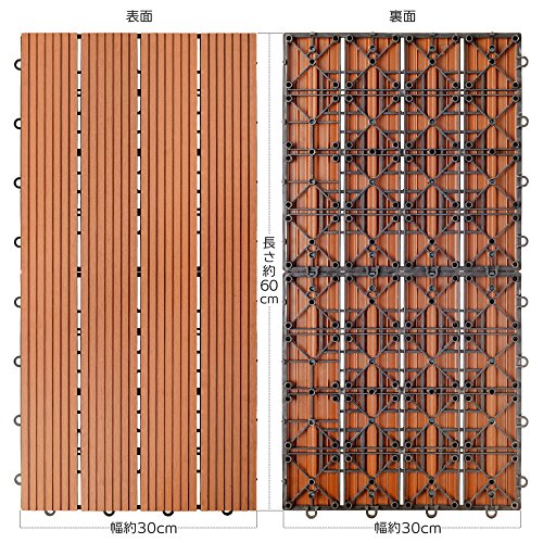 ウッドデッキパネル ライトブラウン ロング 6枚セット : ジョイント式 人工木 30x60cm
