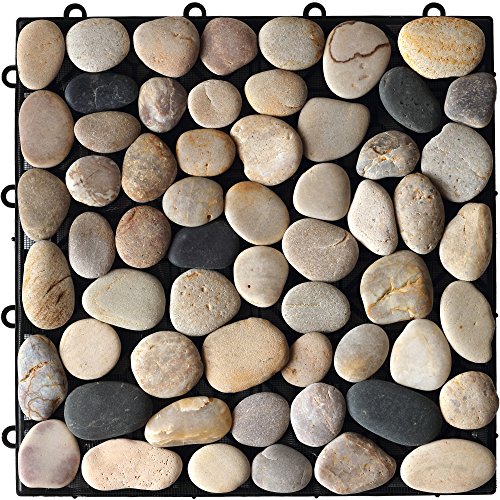 玉砂利 ストーンパネル 6枚セット ジョイント式 タイル : 天然石 【当店ウッドパネルと接続可能】