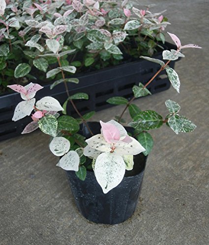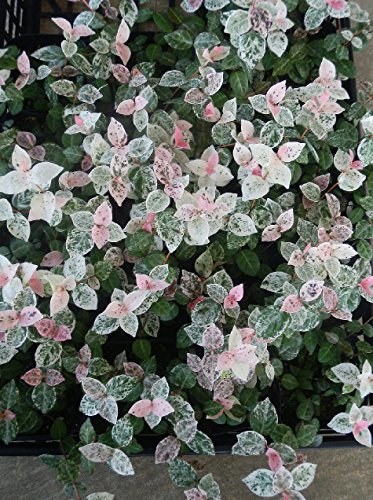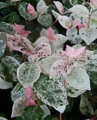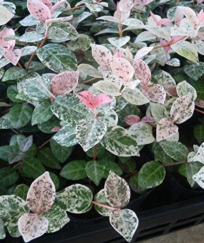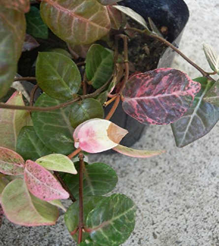 【Trachelospermum asiaticum】 キョウチクトウ科 テイカカズラ属 常緑つる性低木 ピンク色の新芽と白斑の葉が大変美しいガーデンリーフです。植えっぱなしで手間がかからず丈夫な植物です。冬は葉が少々硬くなりますが赤く紅葉します。 【管理】日当たりの良いところで管理します。日照不足だときれいな葉色になりません。真夏の強い日差しは葉焼けを起こしますので半日陰に移動させると良いでしょう。耐寒性はあり、-5℃くらいまで耐えます。葉色のピンクや白斑がなくなってきたら、かなり短く刈り込みます。刈り込むほど美しい新芽がたくさん出ますので定期的に行うことをお勧めします。