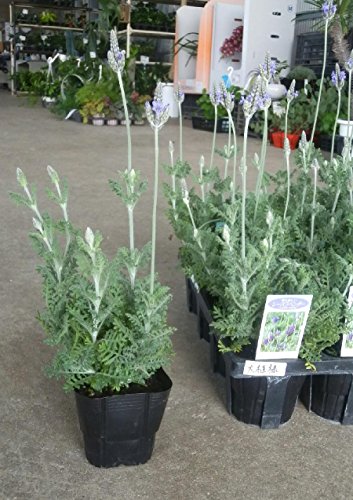レースラベンダー【Pinnata Lavender】 シソ科 プテロストエカス系 非耐寒性常緑亜低木 【花期】10月~5月(厳寒期は防寒が必要) レースラベンダーは葉に細かいレースのような切れ込みがあるのが特徴です。シダの様な葉なので英名ではFern leaf lavenderなどと呼ばれます。 花茎が長く、花や葉に触れると独特のアロマな香りがします。(ラベンダーの香りではありません)四季咲き性で秋~初夏まで長期間、薄紫色のお花を観賞できます。(厳寒期は防寒が必要) ラベンダーとして収穫することはなく、主にガーデニング用に楽しみましょう。 【管理】日当たりの良い風通しの良いところを好みます。原産地の多くが地中海沿岸の温暖で乾いた気候のため、日本のようなじめじめした梅雨やむし暑い夏が大変苦手です。(北海道を除きます)夏越しさせるのであればできるだけ涼しいところで育て、蒸れを防ぐためにも株を3分の1程度に刈り込むと良いでしょう。それでも2~3年で樹形が乱れ下葉が枯れこみ衰えてきますので、挿し木などで株の更新をおすすめします。耐寒性は弱く、5℃以下になると株が傷みますので鉢植えで管理し屋内に取り込むことができるようにしておきましょう。