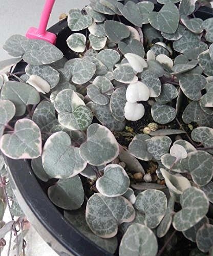 【Ceropegia woodii】【Lady heart】 カガイモ科 セロペギア属 常緑つる性多年草 【レディハート】は葉のふちがピンク色で全体的にクリーム色を帯びた品種です。ハート型をした多肉質の葉が連なり、長いつる状になった人気の多肉植物です。 ■ご注意■レディハートの斑は安定して出てこないことがあります。斑の無い葉が多くなってきたら、そのつるは切り落としてください。 【管理】 日当たりを好みます。しかし真夏の直射日光は葉色が悪くなりますので、強い日差しを避けた明るい日陰で育てます。乾燥には強いので、水は鉢土が十分に乾いてから与えて下さい。与えすぎると根腐れの原因なります。 水やりはバケツ等に水をはり1時間くらい鉢ごと浸けておく方法が好ましいです。つるは水に浸らないように束ねておきます。ダメになる一番の原因は高温時の過湿です。真夏の暑い時期はできるだけ涼しい所で管理しましょう。寒さには比較的強いので5℃前後あれば問題ないでしょう。