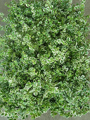 【プミラ 斑入り】 クワ科 フィカス属 常緑つる性低木 寄せ植えの材料に便利でお花や観葉植物などいろんなものとの相性が良いです。斑入り葉が優しい明るい印象を与えますのでお部屋でお庭で映える品種です。単品でも十分存在感があります。這い性でまわりにへばりつく性質なので花壇の縁に使うのも良いでしょう。 【管理】 性質は強健で放任していても勝手に育ちますので非常に扱いやすい植物です。日当たりと適湿な場所を好みますが、斑入り葉は真夏は葉焼けしますので日陰で管理します。乾燥を嫌いますので水はたっぷりと与えてください。耐寒性はありますが冬に0℃を下回るような場所では葉が著しく傷みますので防寒が必要です。