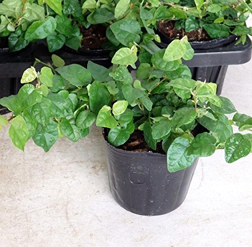 【プミラ 青葉】 クワ科 フィカス属 常緑つる性低木 細かい根が枝から生え吸着します。非常に登坂性が強く、生育旺盛で株を覆います。グラウンドカバーとしても利用でき、剪定を繰り返すことによって枝数を増やしボリュームのあるスペースができます。日当たりの良い屋外が適していますが半日陰までOKですから室内観葉としても人気があります。 【管理】性質は強健で放任していても勝手に育ちますので非常に扱いやすい植物です。日当たりと適湿な場所を好みます。葉が傷んだら刈り込みます。刈り込みを繰り返すことによって新葉が芽吹き株を青々と美しく保ちます。乾燥を嫌いますので水はたっぷりと与えてください。耐寒性はありますが冬に0℃を下回るような場所では葉が著しく傷みますので防寒が必要です。