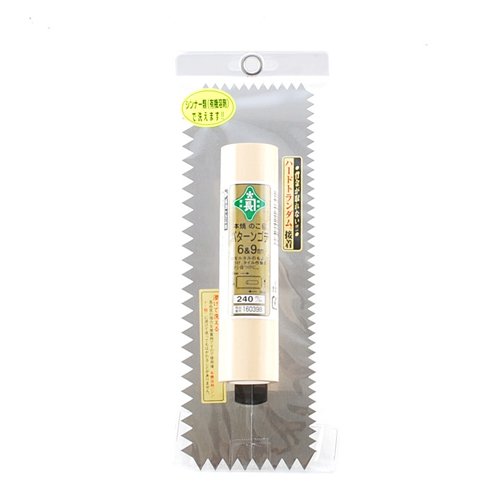 ●【用途】モルタルの模様つけ、タイル作業のクシメつけに。【特徴・機能】モルタルの模様つけ、タイル作業のクシメつけに。背金が取れないハードトランダム接着。シンナー(有機溶剤)で洗えます。【注意事項】作業箇所にあったコテを使用ください。柄及びコテ身にガタツキがある場合はしようしないでください。作業が終わったらすぐ使った道具を水洗いしてください。