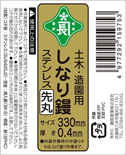 緑長 土木造園用 しなり鏝 先丸 ステンレス製 330mm 板厚0.4mm
