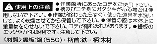 ●【用途】レンガ積み用鏝。●【機能・特長】レンガ積み、タイル貼り、モルタル塗り専用の鏝です。モルタルをすくいやすい形状です。●鏝板:鋼(55C)。●柄首:鉄。●柄:木材。
