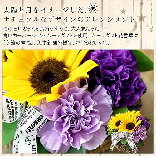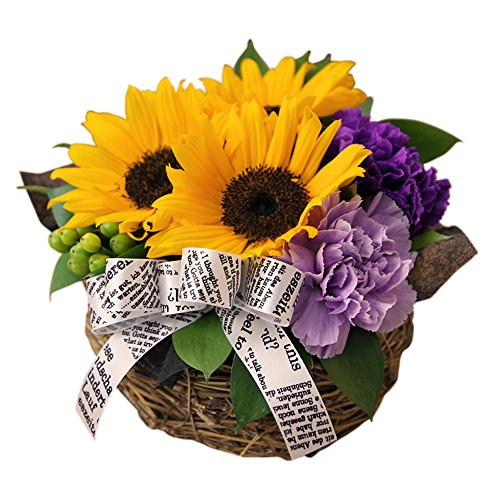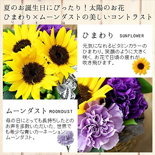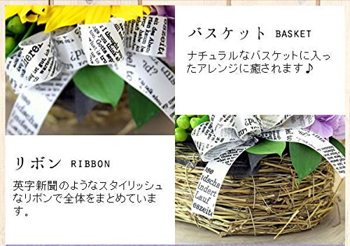 - 【商品内容】ムーンダスト(2色)、ひまわり、ヒペリカム、丸葉ルスカス、バスケット、ギフトラッピング、お花の長持ち剤付