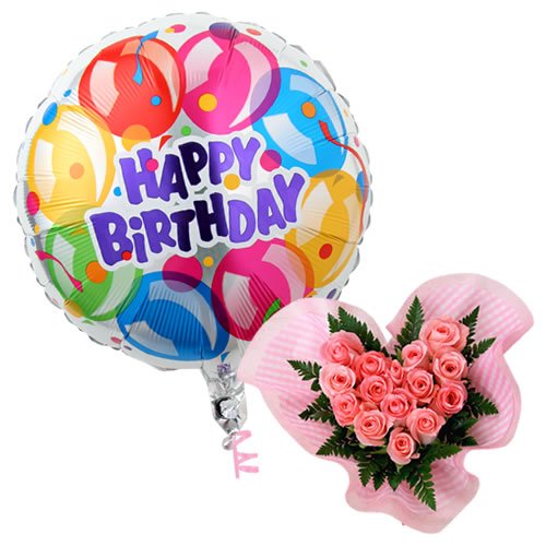 バルーンフラワー バルーンハート 浮かぶバルーン(バースデー)とハート型バラアレンジのセット 誕生日 記念日 開店祝い などに