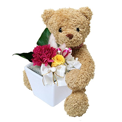 - 【商品内容】ぬいぐるみ(ベア)、カーネーション、バラ、ラグラス、あじさい、リボン、グリーン、パールピック、リボンピック、器