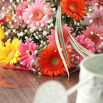 カラフルな花色で人気ナンバーワン!愛らしいガーベラは花束をもらう人のかわいらしさを引き立てます。