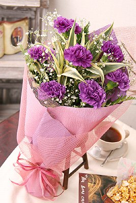 世界初、こんな色見たことない!紫カーネーションが輝く花束 幸せを願うカーネーションムーンダスト花束(カーネーションギフト花束)