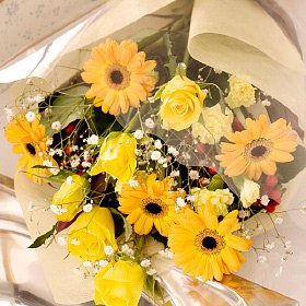 - 【商品内容】バラ・ガーベラ他 ギフトラッピング付※切花長持ち剤1袋、お花のお手入れガイド付※こちらの商品は、入荷の状況によって、色、種類が異なる場合があります。ご了承くださいませ。