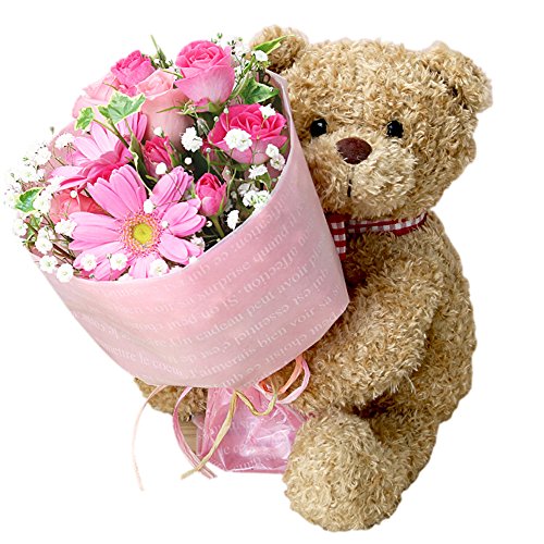 花 誕生日 フラワーギフト くまのぬいぐるみ付き花束 (バラ)