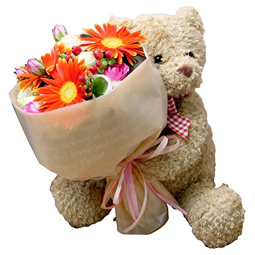 - 【商品内容】ガーベラをメインにして季節のお花をミックスしておつくりさせていただきます、ベア(ぬいぐるみ)、お花のお手入れカード ※こちらの商品は、入荷の状況によって、色、種類が異なる場合があります。ご了承くださいませ。【サイズ】花サイズ:横幅20cm×奥行20cm×高さ28cm ぬいぐるみサイズ:横幅20cm×奥行25cm×高さ24cm