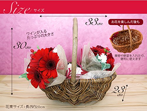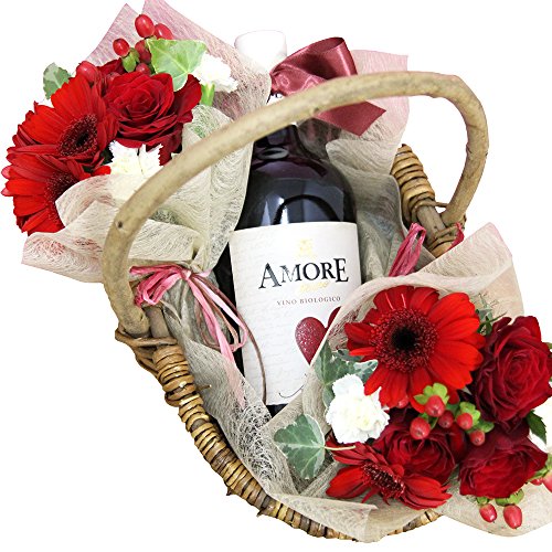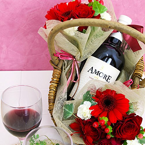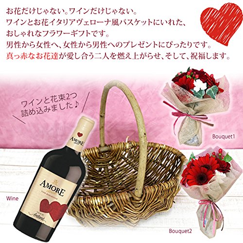 - 【商品内容】花束×2 赤バラ、季節のお花(赤系)、グリーン、アモーレ・エテルノ オーガニック ロッソ 750ml、バスケット※入荷の状況により、色、種類が異なる場合あり。お花のお手入れカード付、ギフトラッピング、メッセージカード付き【バスケットサイズ】横幅約33cm×奥行23cm×高さ30cm【花サイズ】長さ約20cm×2個