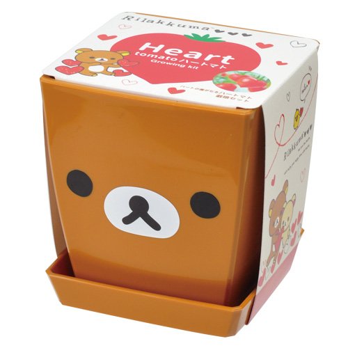 リラックマのフェイスポットでハート型の実をつけるミニトマトが育てられます。【特長】・リラックマのフェイスポットでハートマトが育てられる、とても可愛い栽培セットです!・お部屋で育てるのに便利な同色の受皿が付いています。・土、種、説明書がセットになっているので、はじめての方でも簡単にはじめられます。・季節限定!ぷっくりとしたハート型の実をつけるミニトマトの栽培セットです。・種まきから約3ヶ月頃から花が咲き、実をつけます。・真っ赤なハートのトマトは可愛いさ倍増!・料理に添えれば愛情たっぷりメニューに早変わり♪[セット内容]・フェイスポット・培養土・鉢底シート・種・説明書