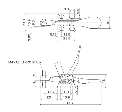 育良 下方押え型トグルクランプ 水平ハンドル(31104) ISKHH1500-1030 【7929951】