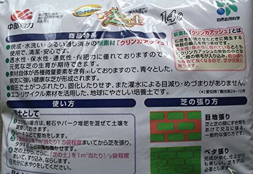 - 芝生に寝転んでも衣服が汚れ難い新素材「クリンカアッシュ」を使用した芝の土です。クリンカアッシュは高温で焼成したものを水洗い、ふるい通ししているので、清潔です。また硬質な素材ですので、灌水や踏圧による目減りや目詰まりがなく、透水性・保水性・通気性・保肥性に優れています。