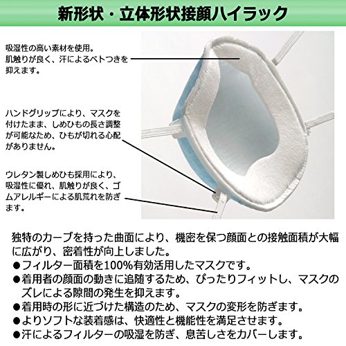 - [特長]1)高性能フィルターが可能にした再利用のバイプロミクロンフィルターを使用しています。 2)ハイラック650に排気弁を付けた、呼吸の楽なマスクです。湿気や熱を排気弁から逃すのでムレません。