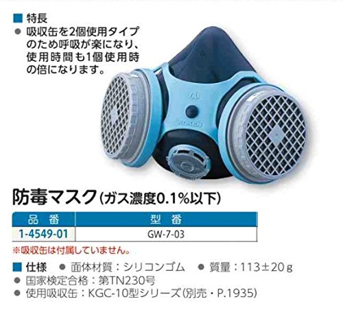 - 使用吸収缶:KGC-10型シリーズ(※吸収缶は付属していません。別売の対応商品をご購入ください。)