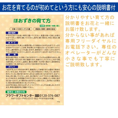 - ほおずき4.5号鉢、バスケット、育て方のしおり ※本商品は観賞用です。食用ではありません。6月下旬~7月上旬までは、実が青い状態でお届けとなる場合があります。徐々に色付きます。