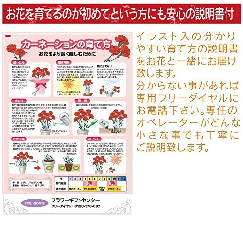 お花以外に、「おかあさんありがとう」の母の日カードと育て方のしおりを同梱します。