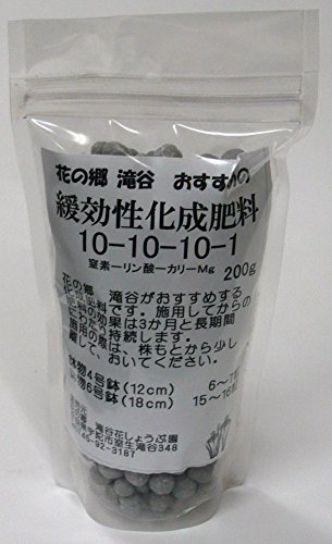 緩効性化成肥料10-10-10-1(窒素-リン酸-カリ-Mg)は、肥料の効果は3か月と、長期間にわたり持続します。