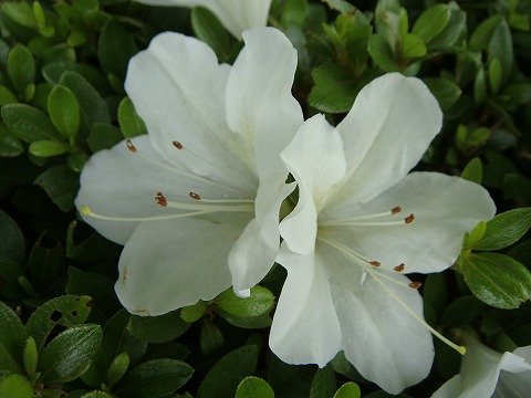 - ●品種の特徴博多白サツキ:白花品種。直径約4cmくらいの白花。丸葉の強健品種。和風庭園だけでなく、洋風庭園でも良く合い、日本の気候によく合います。刈り込んで樹形を仕立てたり、生垣に用いたりと用途は多様。