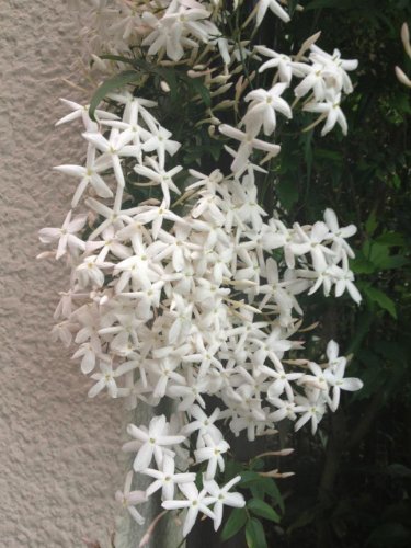 - ●品種の特徴香りを持つ、つる性常緑植物です。生育も良いので、生垣やグランドカバーにおすすめ。「つる性」=「フェンス!」ってなりがちですが、この苗はグランドカバーに使いたくなるサイズ。緑のじゅうたんにピンクを帯びた白のかわいい花もいいです。