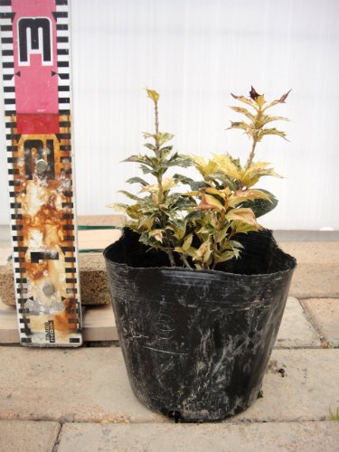 ●品種の特徴 斑入り品種。常緑で年中変わらず美しい葉色。白い斑がまだらに入り目にやさしい彩り。洋風によく合う、防犯に効果的な生垣樹。白い小さな花が咲きます。葉色は花に勝るほど美しいカラーリーフです。 ●苗木の形状 商品はポット苗で、ポット部分含め約0.2m前後。 1梱包10本まで同梱できます(通常梱包)。小梱包なら1本まで同梱可能です。
