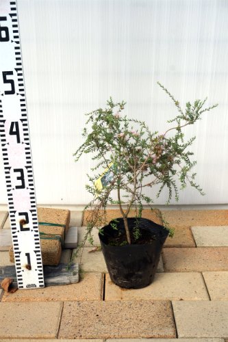 ●品種の特徴 オーストラリアに自生する常緑小高木で、葉が小さく繊細でよく茂ります。5月頃に白い花をたくさん咲かせます。枝葉がブシュ状に良く繁るので寄せ植えや生け垣に最適で、刈り込んでも面白い品種です。丈夫な品種で管理が楽です。コンテナガーデン、インドアなどにもおすすめです。暑さには強いですが、あまりに厳しい寒さには向きません。庭木や寄植えなどにも活躍します。暑さには強いですが、あまりに厳しい寒さには向きません。コットンキャンディは、文字通り、上質なコットンのような 柔らかい花が特徴です。 ●苗木の形状 商品はポットを含め、高さ約0.5~0.6m位の苗です(高さには個体差があります)。 通常梱包1梱包に9本まで同梱可能です。