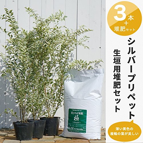 シルバープリペット 堆肥 生垣用セット 【シルバープリペット 生垣苗×3本と花ひろば堆肥「極み」 1袋】 生垣 目隠し 庭木 常緑樹