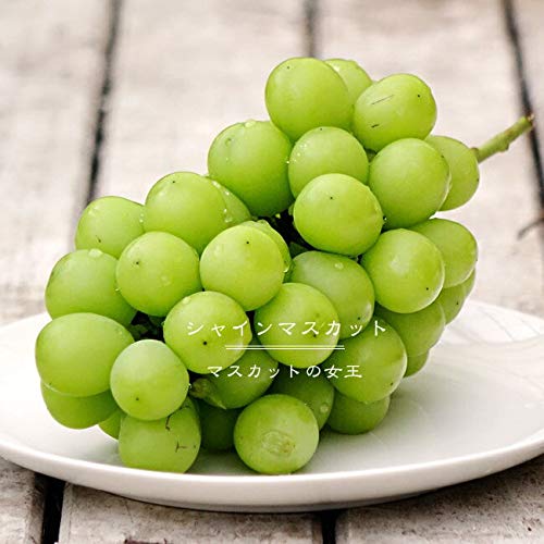 皮ごと食べられ、香りよく1果8~12g程の大粒。マスカット香の爽やかな柔らかい黄緑色の果実は、黄色みが強くなるとより美味しくなります。かたく締まり食味よく、短い楕円形で巨峰より日持ちがします。ウィルスフリー台木に接木してありますので病気に強いです。収穫は9月上~下旬。