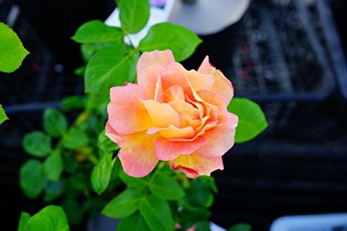 - ●四季咲き、大輪、オレンジバラ。オレンジ色の花弁の裏は色が薄く、赤色の絞り模様が入ります。 ボリューム感のあるゴージャスな花で、通常は一輪咲きの品種です。