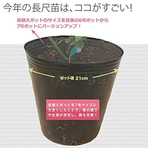 ●ポットも含め、高さ約1.5m前後位です。苗木は7号ポットに仮植されて販売します。落葉時期は葉がついておりません。(休眠期にポット上げするため根が土をつかんでおりません。ポットをはずせば土がボロボロ落ちますが、品質は大丈夫です。)2本まで同梱可能。