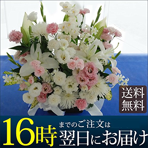【商品説明】基本形は白とブルー、を基調した、お供え用のアレンジです。目的にあわせて、ピンク系やクリーム系をお選びいただけます。器は落ち着いた上品な器をセレクトしておりますが、メーカー廃盤などにより予告なく変更する場合があります。どうぞご了承くださいませ。