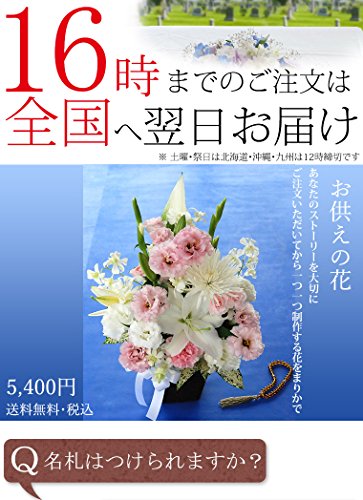 お供え 花 アレンジメントの詳細 使用素材 新鮮な季節の生花 制作方法 すべてご注文いただいてから制作します ギフト対応 商品はすべてギフト対応です。こちらの商品は ご希望によりセロファンラッピングいたします 仕様 段ボールの箱でお届けします ご希望によりメッセージカードは無料でお付けします。 ご希望により名札をお付けします。弔電を同梱いたします(オプション+500) サイズ 約37×44センチ 色展開 ブルー系 ピンク系 クリーム系 真っ白 ミックスなど5色から選べます