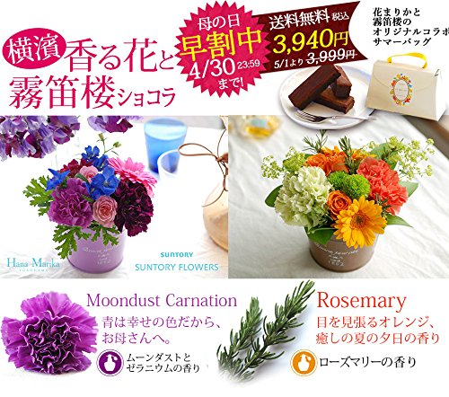 母の日2017『香りの花と横浜スイーツ』生花 送料無料 母の日 早割 スイーツ付アレンジ 生花 ムーンダスト カーネション フラワー ギフト 母の日ギフト 母の日 人気 母の日 お菓子 母の日洋菓子 母の日のプレゼント フラワーアレンジメント お花タイプ,香るローズマリーアレンジ