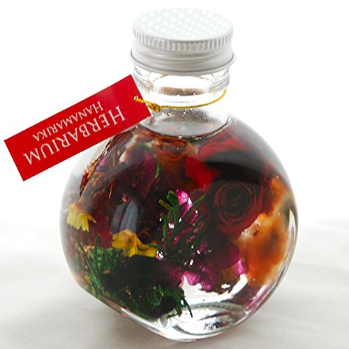 - ハーバリウム(ハーバリューム)とは植物標本の意味で、特殊な安全性の高い保存オイルに植物を付けて飾ったものです。