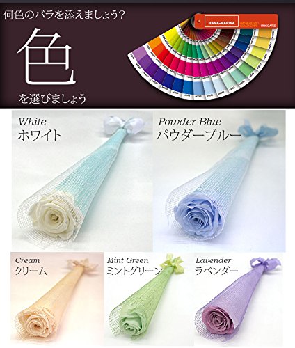 傷のない厳選されたバラだけを選んで痛まないように丁寧に色を抜いてそして、きれいに染め上げたものです