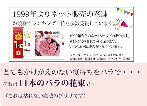 11本のプリザーブドフラワーのバラの花束の説明