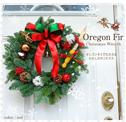 クリスマスリース 玄関 手作り[オレゴンスターリース]生 45cm(玄関 玄関 レッド