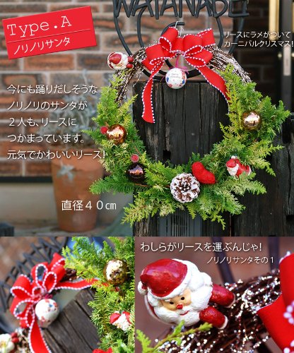 クリスマスリース 玄関 手作り[クリスマスカーニバル] 生 35cm クリス のりのりサンタ