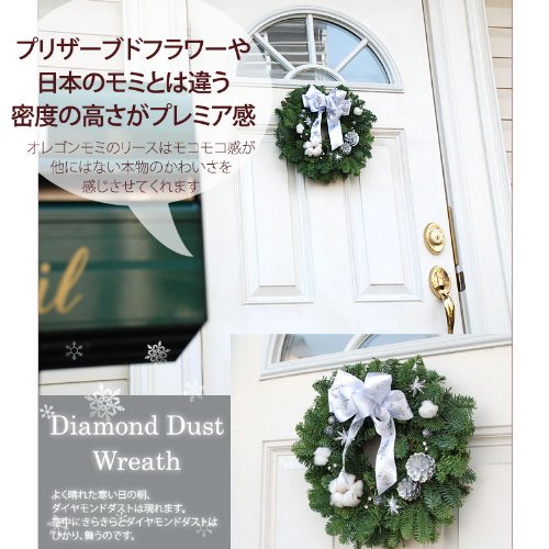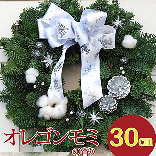 クリスマスリース 玄関 手作り[オレゴンモミのダイヤモンドダストリース] シルバーオーガンジー