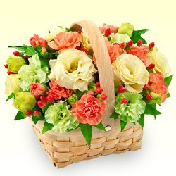 - 手付きのウッドバスケットに、やわらかい色合いの花たちをあふれんばかりにつめました!511053【花キューピット】即日配達フラワーギフト ・キュートなクリームトルコキキョウのアレンジメント! お祝いのメッセージも美しい花と一緒なら、いつまでも印象的に心に残ります。