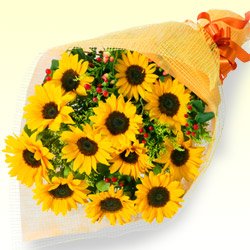 - シンプルなひまわりの花束は、爽やかでボリューム満点!夏にピッタリの花束です。 511143【花キューピット】即日配達フラワーギフト ・夏生まれの人には、シンプルなひまわりの花束がおすすめ♪ お誕生日を迎える方には最適なプレゼント。あなたのセンスが光るギフトです。