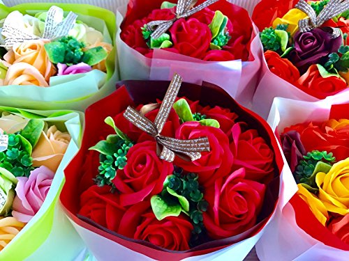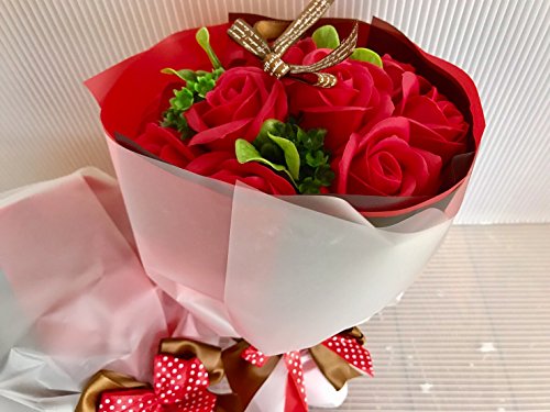 フレグランス シャボンフラワー ソープフラワー 薔薇 枯れない 花 ブーケ プレゼント 花束 母の日 父の日 出産祝い 結婚祝い お見舞い 誕生日 石鹸 香り ギフト お祝い ラッピング 包装 ギフトバック付き (レッドブーケ)